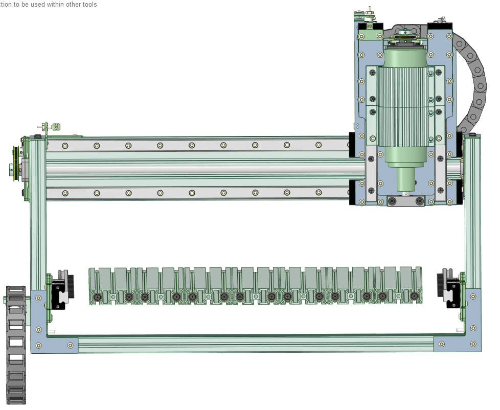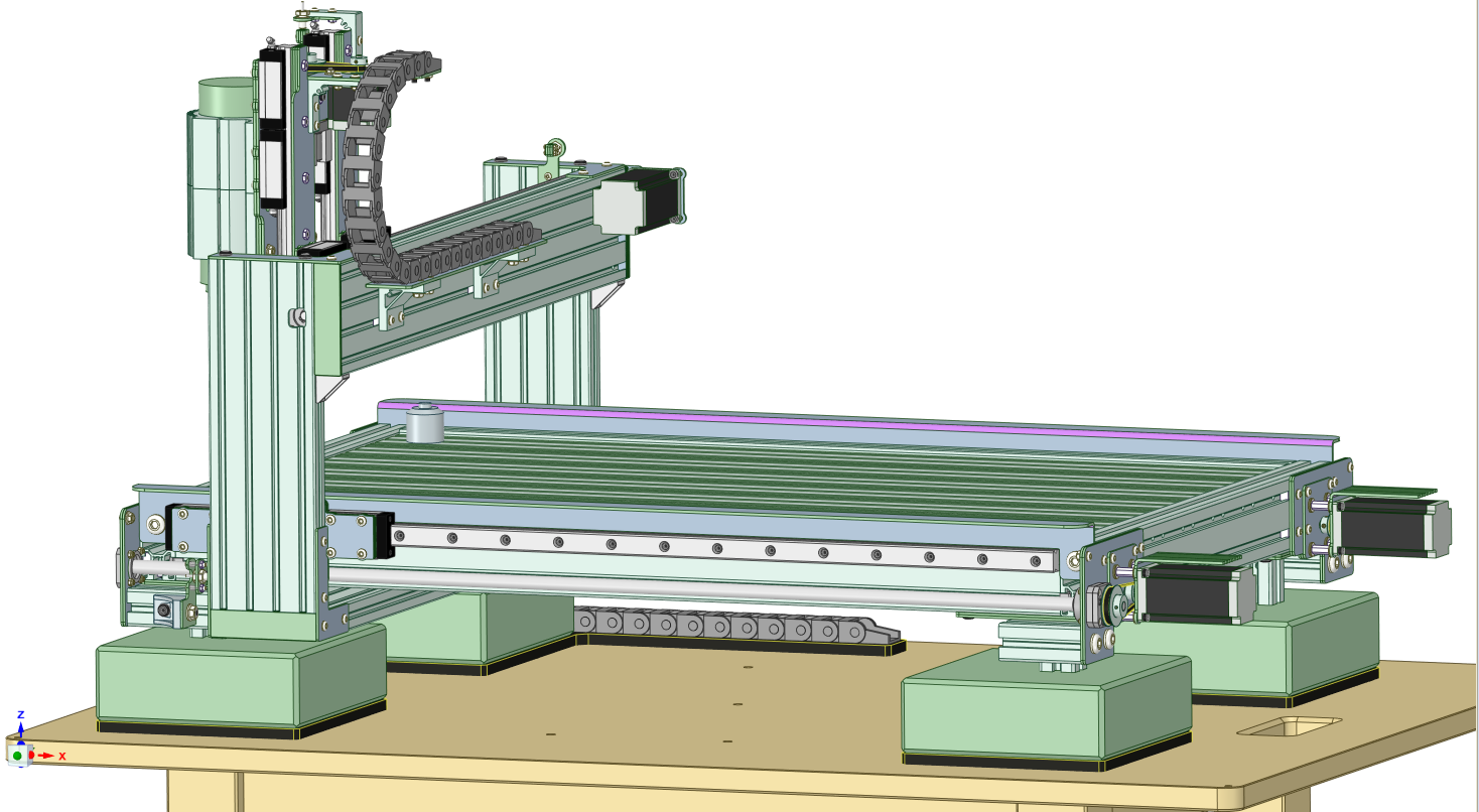 Drive systems: Misumi BSST1505 ballscrews (c7, 15mm diameter, 5mm pitch). X axis with two ballscrews.