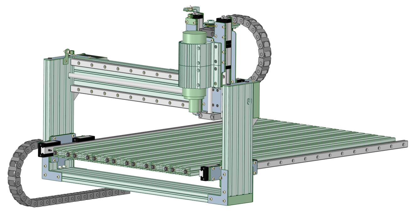 I've opted to work with Misumi aluminum extrusions. These stand out from any other alu extrusions because they are VERY strong. The portal is an "all-around" construction of 30x120 mm alu extrusions which are definitely more rigid than any milled aluminum beam constructions.