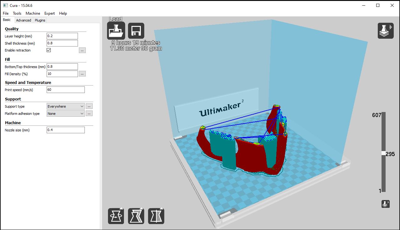 - and for me it generated supports for that file. Attached a screenshot of the layer view that shows the supports and a second screenshot that shows the settings used. Machine is a UM2 with Olsson Block.