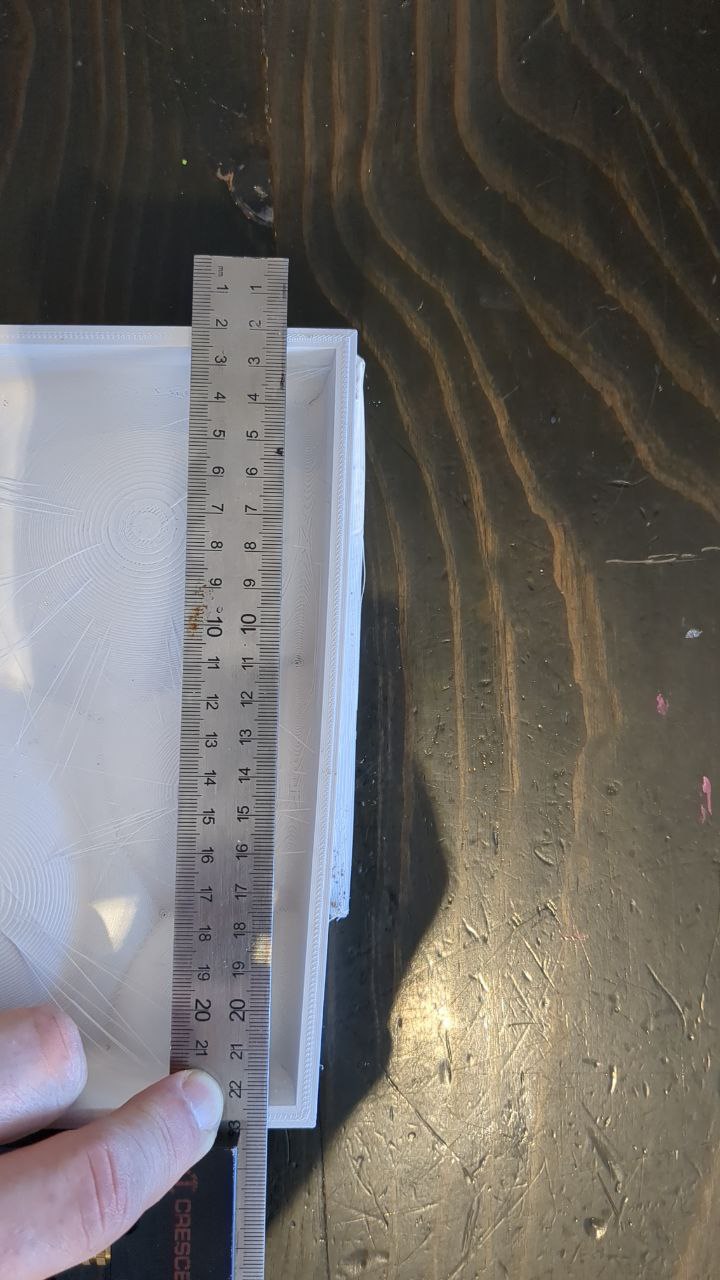 Main machine is a Trinity XL delta (400mm x 600mm h). Its worked well in the past soI started doing some tile prints (ie 200mm square by 25mm h). Did a bed level before I started and notice the be adjustment was like the plate was slope...anyway I let the print proceed as previously it was good enough for draft/test...