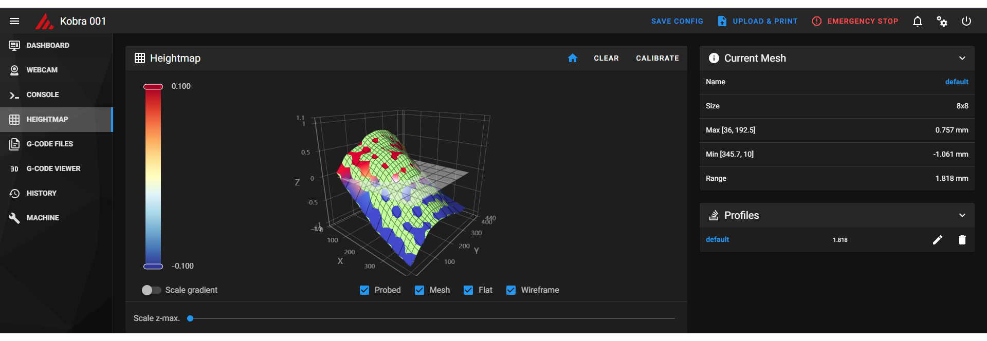 I have 2 heavily customized Anycubic Kobra Maxs running klipper off of a NUC, both have an octopus pro board, Mosquito magnum, BTT smart filament sensor and BL Touch. I had a catastrophic failure on one that broke my hotend off and since then I have not been able to get a Bed mesh to operate correctly. The BLTouch has been replaced as well as the wires back to the board. The Bed Mesh on Kobra001 is my issue, this mesh should appear to be more like that of the image of Kobra 2. The problem here is the printer operates off that god awful mesh and Prints extremely close on the back of the bed, perfect in the center and so high in the front it wont stick. Before my failure this worked excellent and the heightmap was not like this. I have done multiple meshes and get consistent results.