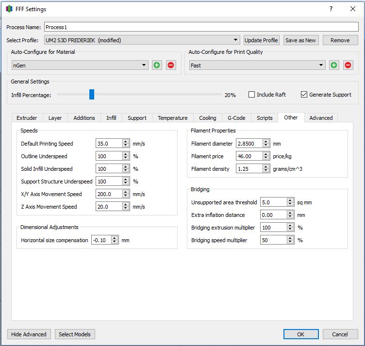 On my UM2+ Profile I got from Frederik, I see 35%. Is that too slow? Just right?