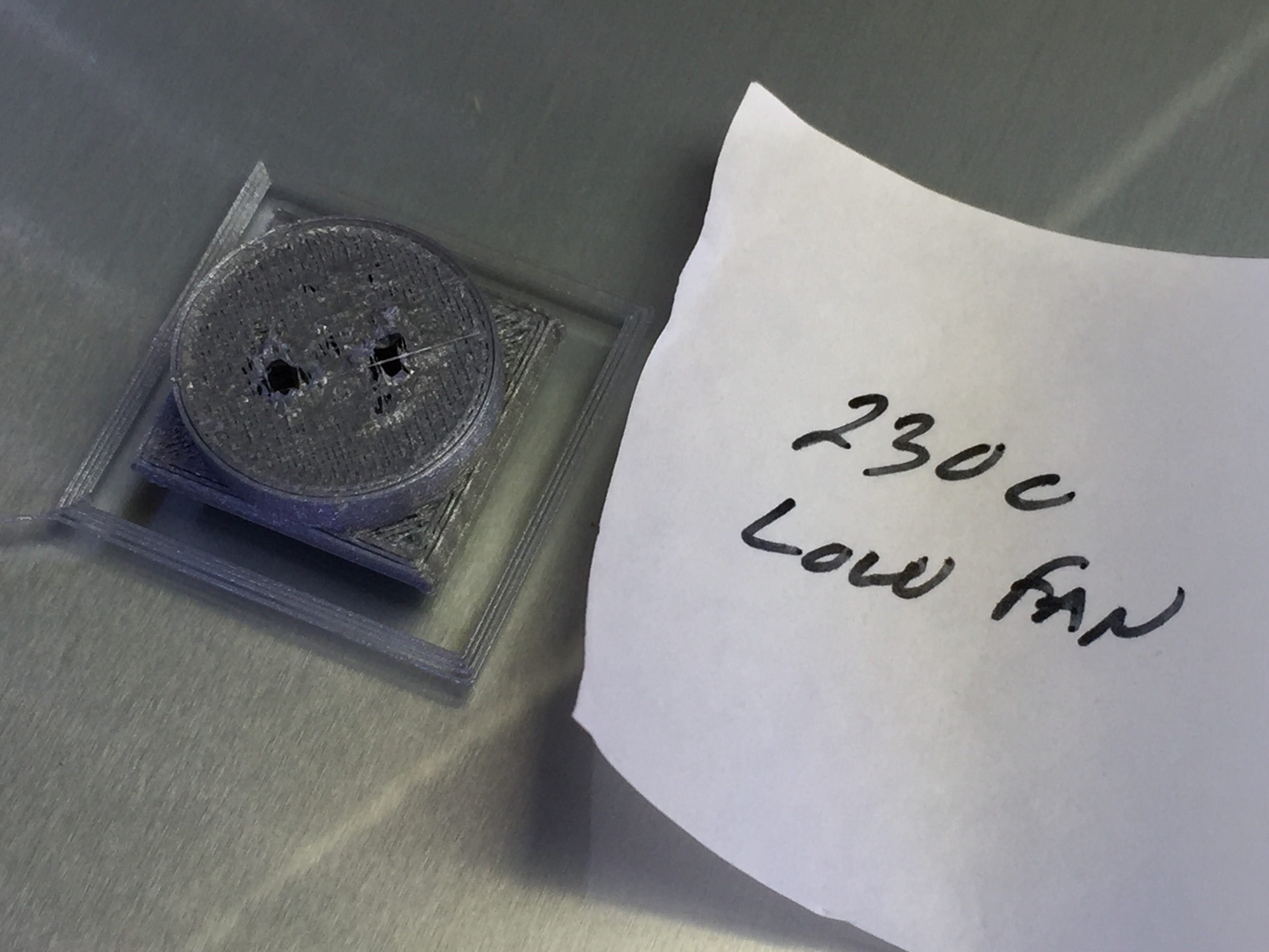 Then 230, again low fan. Decided to try printing at 45mm for this