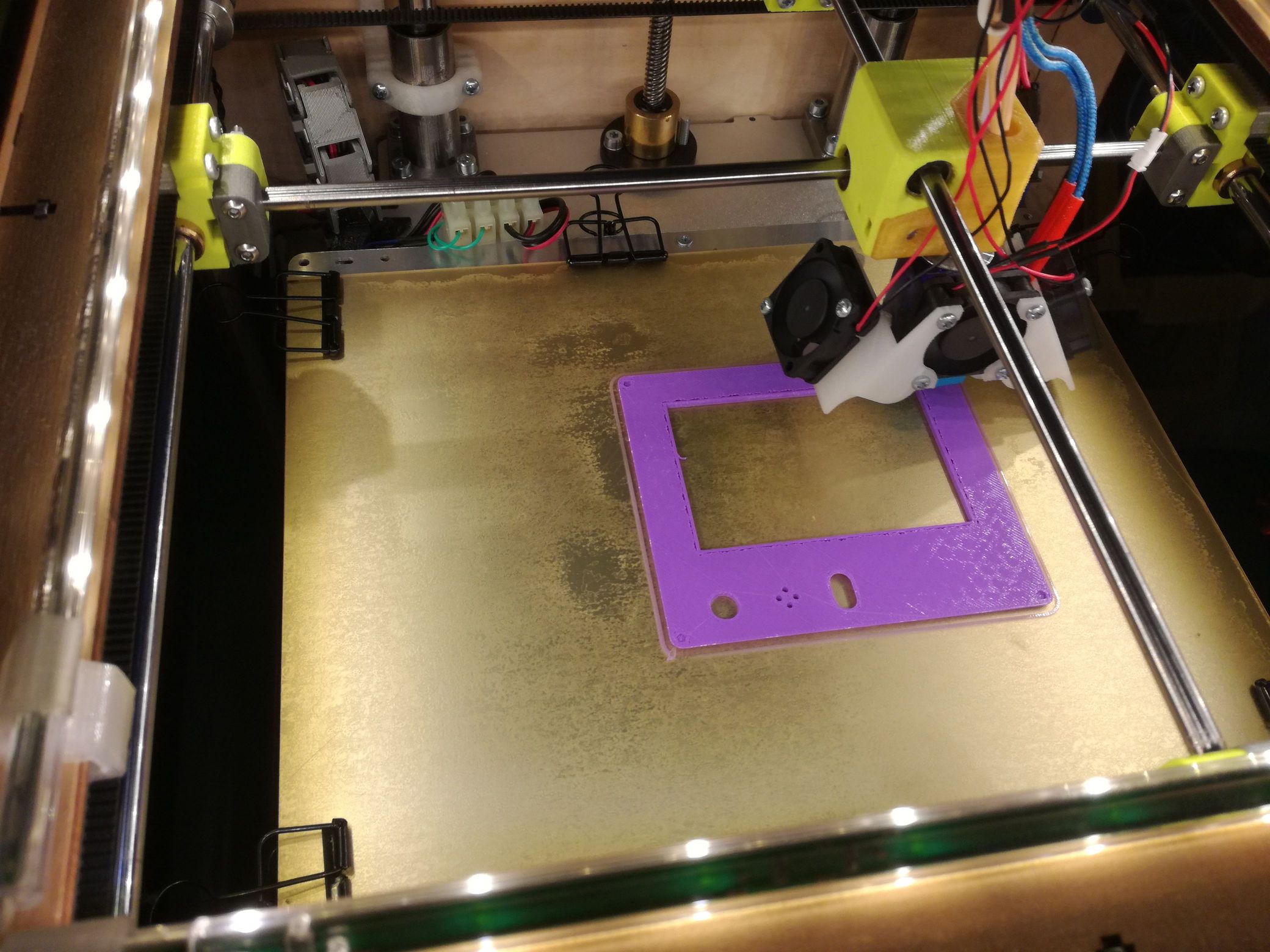 Thought I'd share a picture of the new printer's bed while printing the socket for the new display.