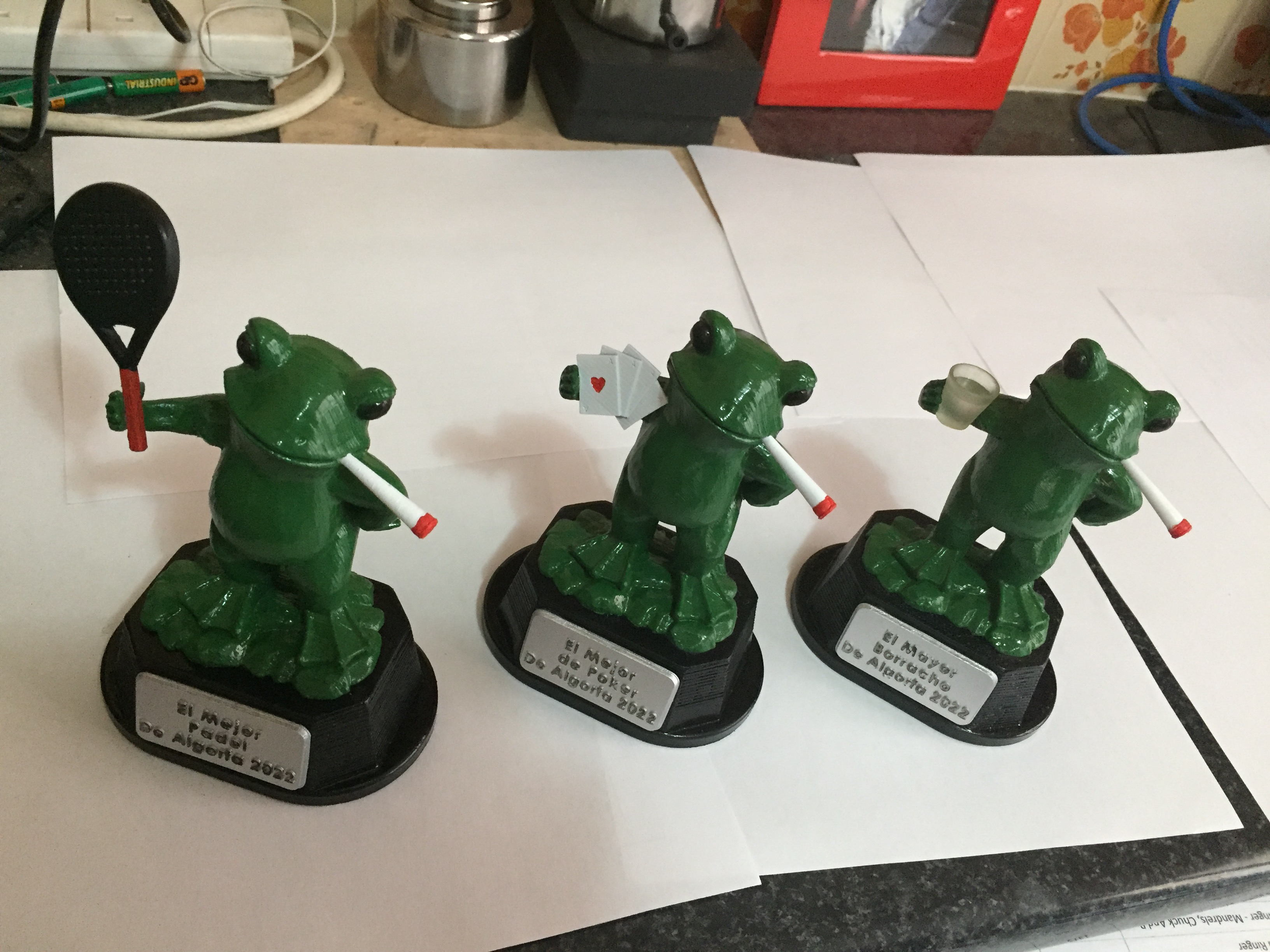 I thought I would share my latest prints, Frog Trophies for our local fiesta.
