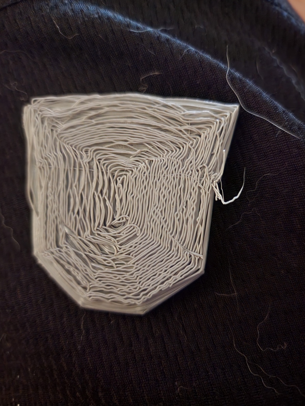 Cleaned the nozzle with brass brush. Cleaned and leveled bed again. After an hour of messing with it to get it to print from usb cable, I did another test run. Looks much better but still has few uneven lines but better than the original piece.