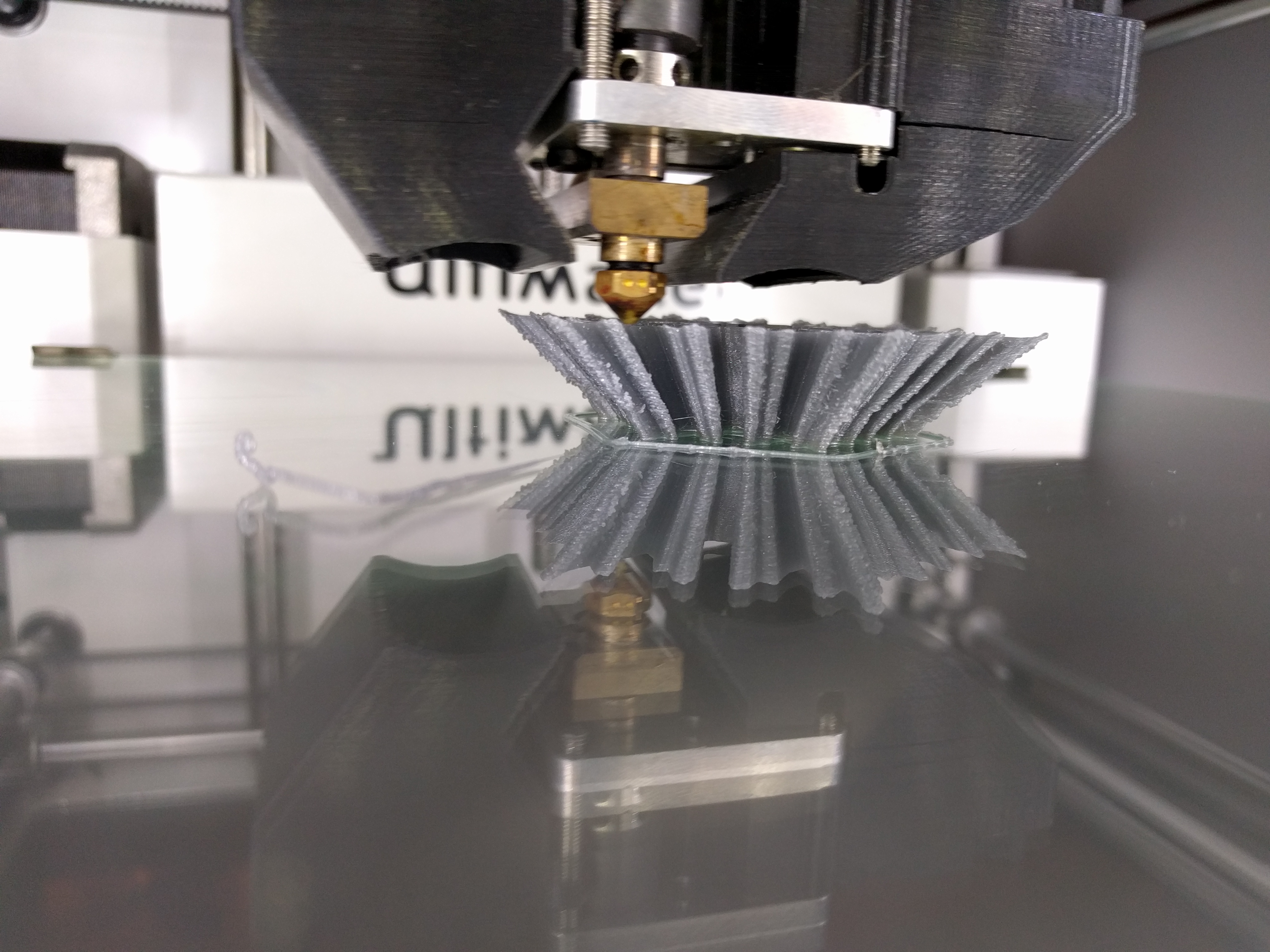 I sliced it with Cura 2.3.1 using the Spiralize Outer Contour setting (vase mode), printed with PLA at 210 °C and a 0.8mm nozzle.