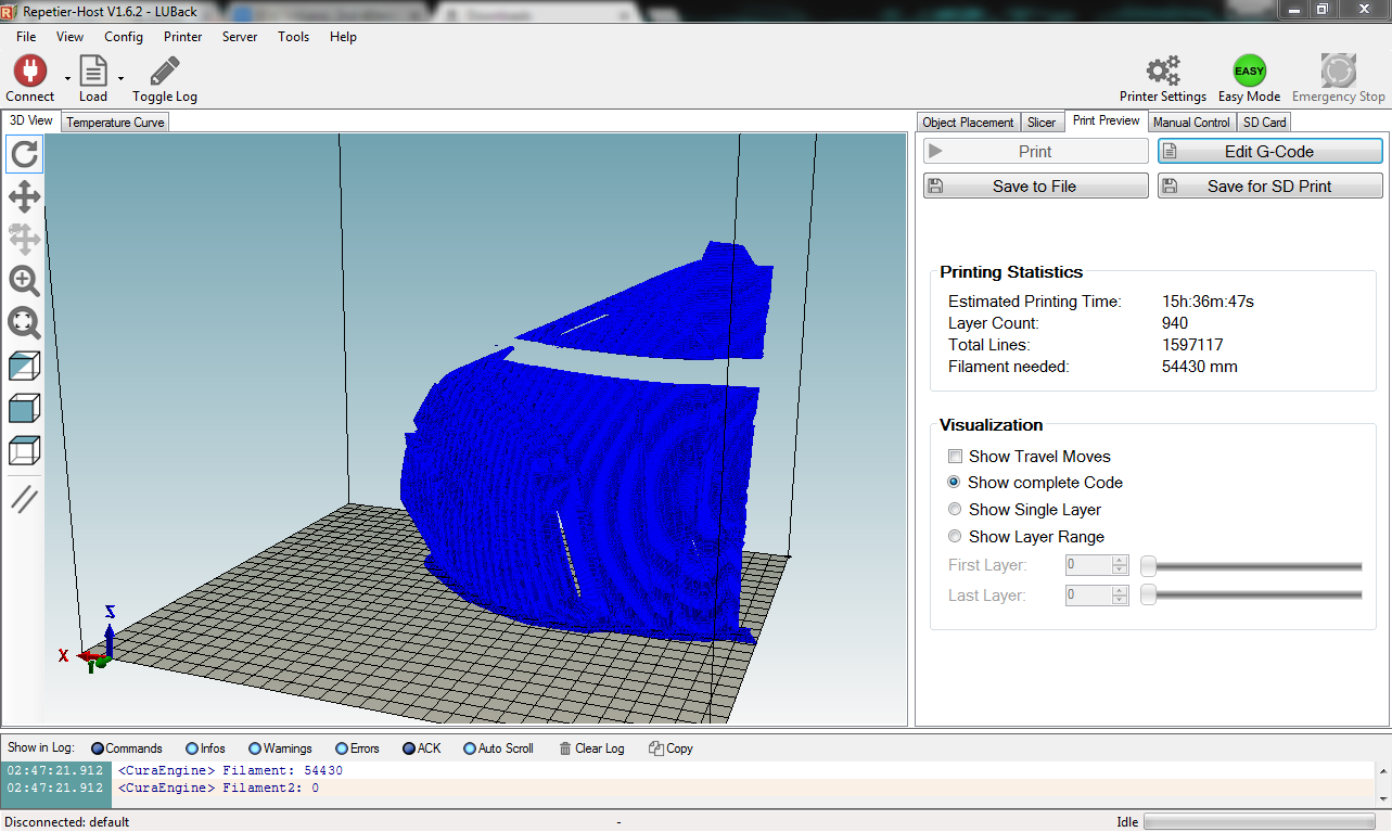 I am using repetier host and using Cura as the slicer and I ran into an issue I have never seen before, about 3/4 of the way up there is a blank spot in the model. I am in the process of printing an Iron man MK45 and this is the top left quarter of the back, I have printed the top right with no issues and now this? I have attached a screen shot so you can see what I am talking about. I am just wondering is this ok? Can I still print? or do I have to look into fixing the model and if so How do I go about that? I have already sliced the back into the perfect pieces to print on my printer and I would hate to waste filament. Any help would be greatly appreciated, Thank you Kevin.