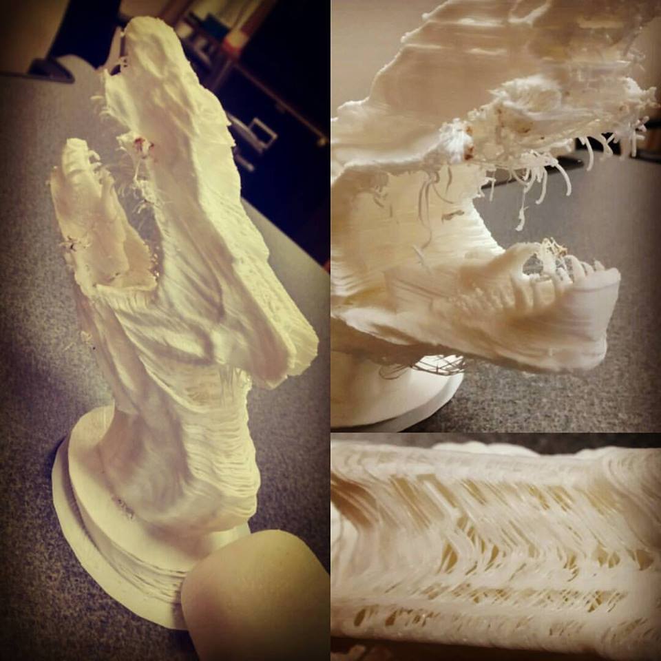 I'm collecting failed\wrong\corrupted\glitched 3D prints for an art project. I'm interested in all kinds of models that failed during the printing process, and I'm interested in already printed models, not in digital 3D models designed following some kind of glitch aesthetic.