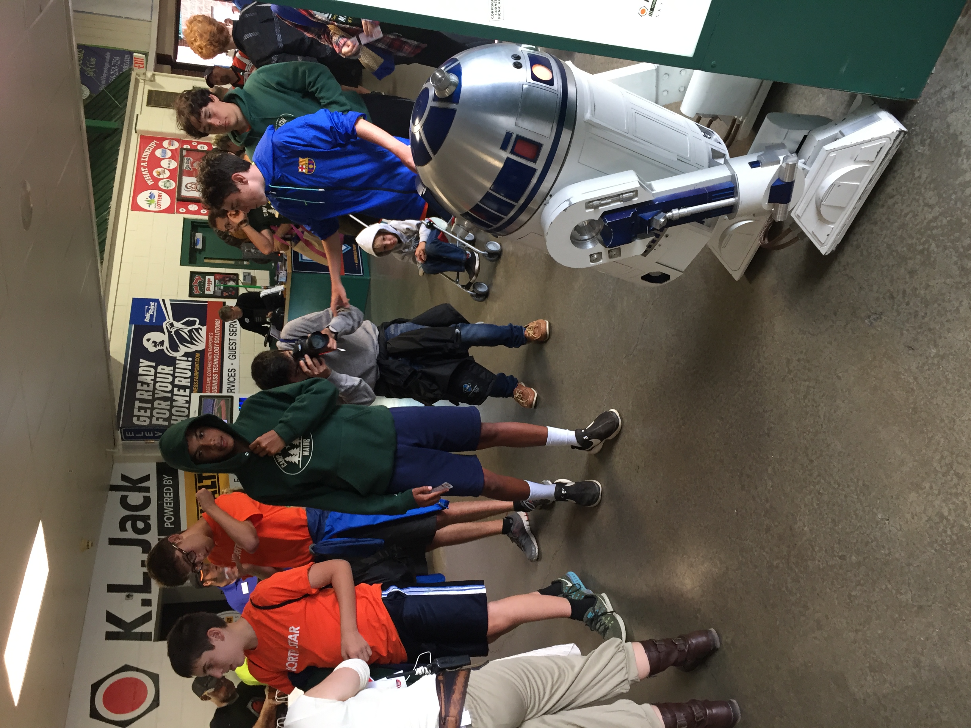 I was prepping for R2-D2's appearance at a minor league baseball team's STAR WARS Night. It was in Portland (Maine), 2 hours south of me. I think this is the 5th or 6th time I have done this event. R2's foot drives have had a major upgrade but the center foot has some issues, the caster bearings have corroded and I need to replace it. R2's foot shell has less than an inch of ground clearance so on uneven surfaces, R2 can get stuck. But the new foot drives have a lot more power, so R2 can generally plow through and move around really well. However the baseball infield (clay) is pretty soft, so we did good but a few loose spots, we were stopped in our tracks. So so many kids, adults, families stopped for photos. A lot of smiles...a couple if misbehaved kids were annoying, hitting and kicking R2 (while the parents sat there and thought it was funny). I intervened and asked those parents to move along and leave, which they did. It's amazing how some people will walk up to your creation and try to harm it. (A $10,000 dollar one at that) I try to make light of it and have some fun. One teenager kept tapping R2 on the head and asking what is he saying. I walked up to him and told him "I can tell you what he's saying" I lightly tapped HIS head and told him "He says stop hitting my head" The kid's parents thought that was hilarious and apologized. Not all people mean harm, they just lack common sense. :)