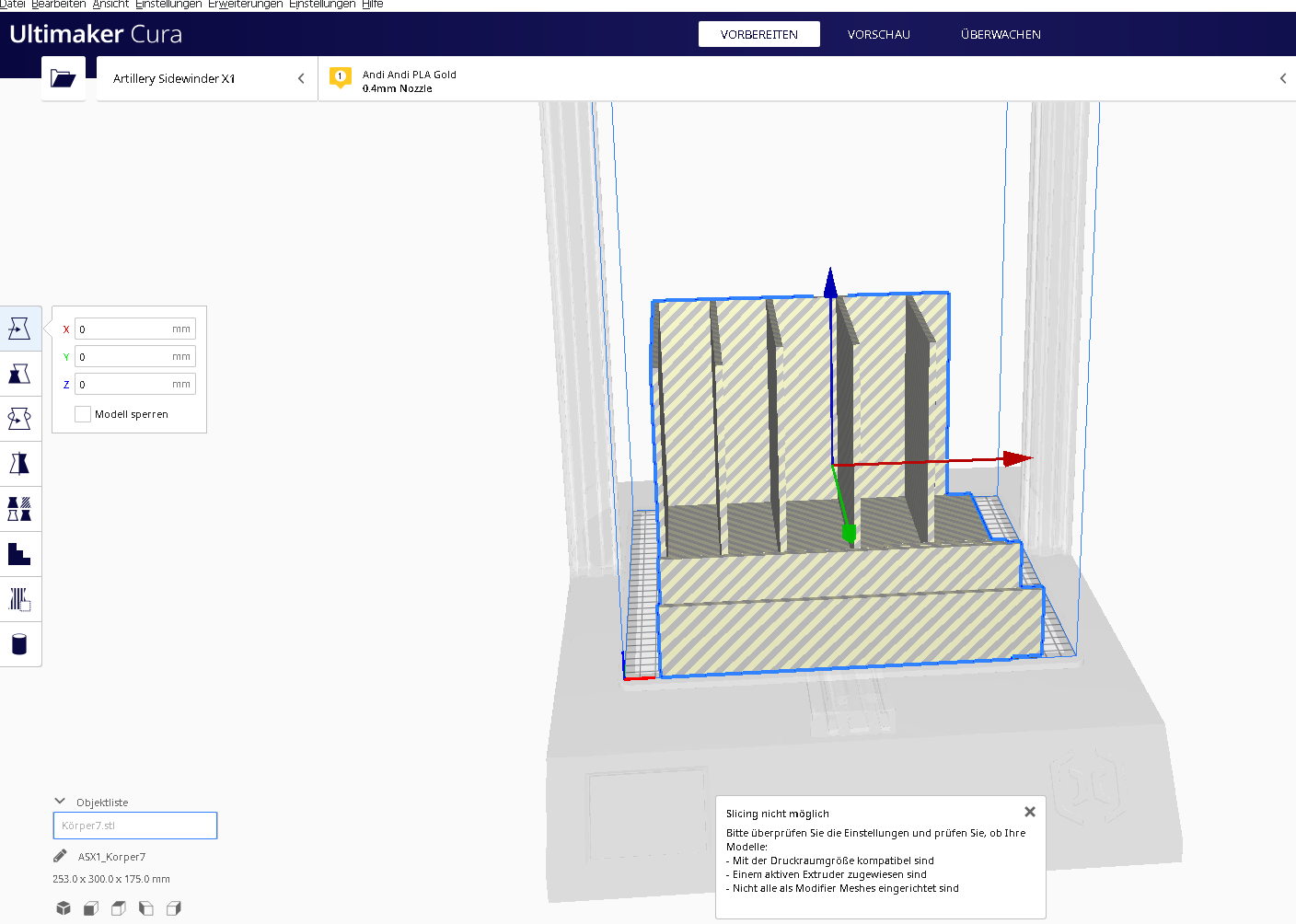 Ich habe eine STL Datei in 300x300mm erstellt für meinen Sidewinder x1 der genau 300x300x400mm drucken kan aber bekomme diese nicht "ordnungsgemäß" auf der druckfläche platziert. irgendwer eine ahnung wie man das "platziert"?