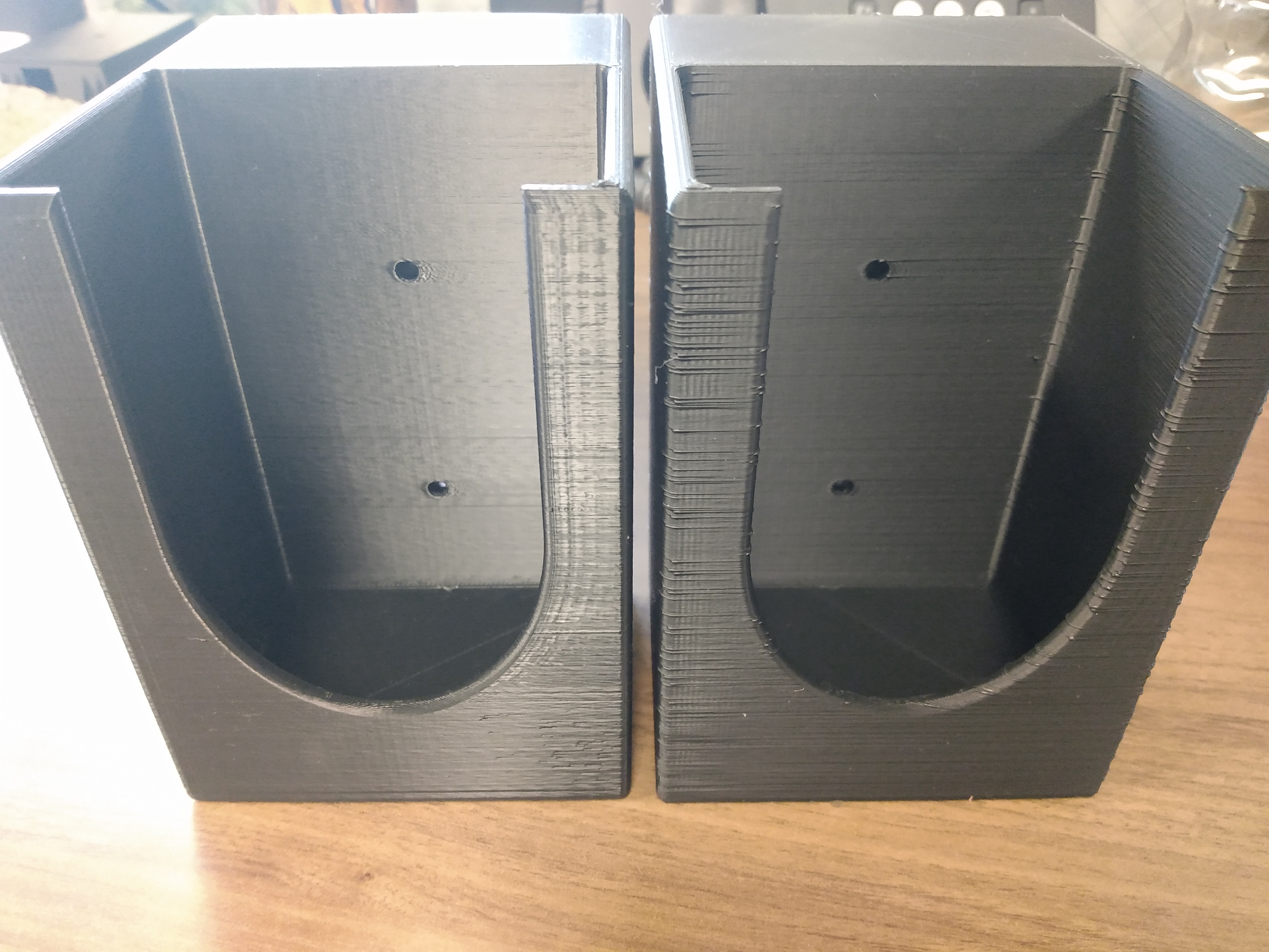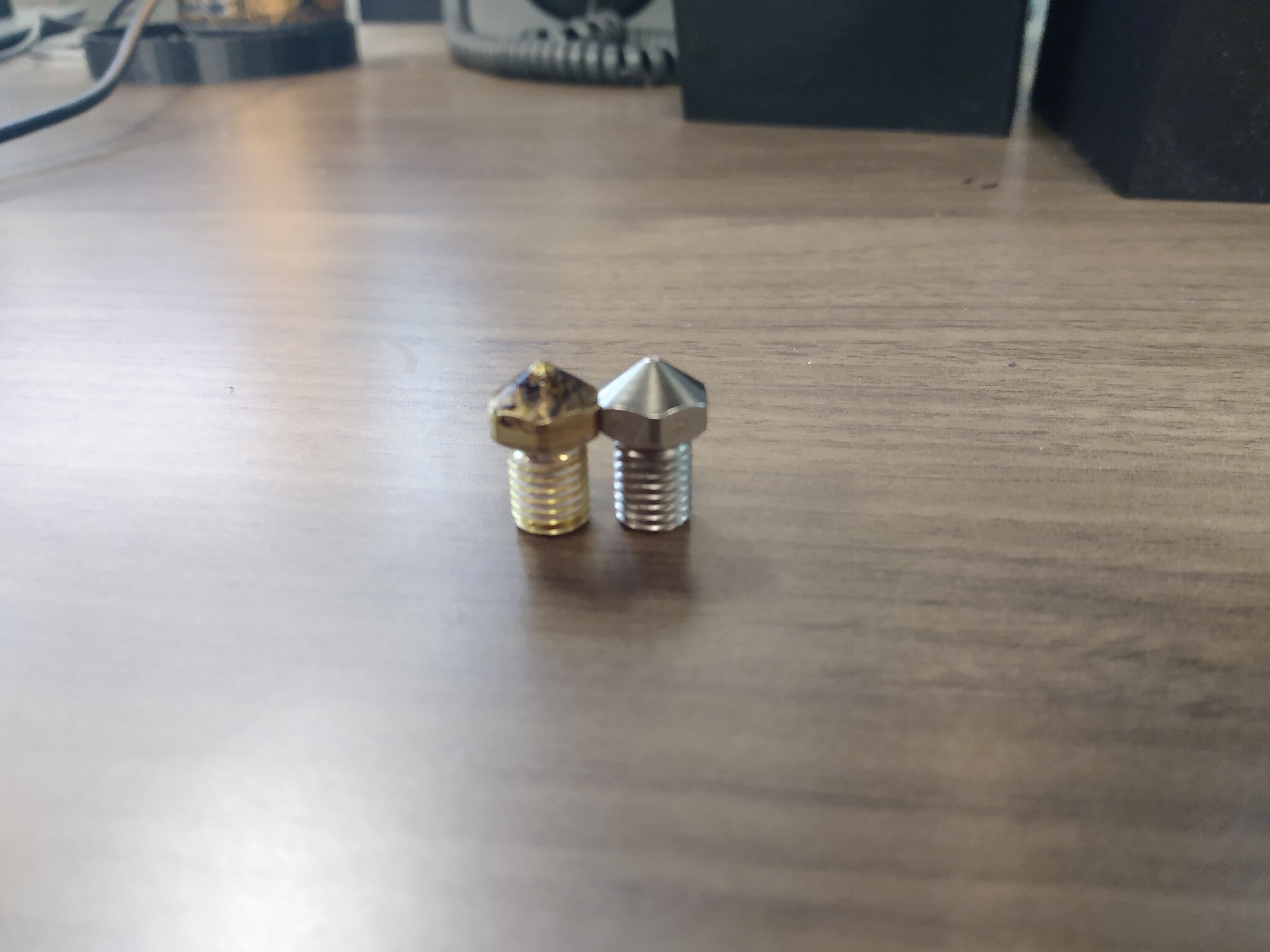 I have been working with a Dremel Digilab 3D45 printer from brand new for the past 8 months, and it has been handling just about anything I have thrown at it. It had gotten up to around 900 hours when I noticed the print quality had kinda started dropping, I had a lot more stringing than before, and there were some inconsistencies that were messing with the prints, to the point I had to throw out a couple prints. I figured it was due for a nozzle change, as I had heard that you should change the nozzle every 500 hours or so. My workplace went and ordered some 0.4mm A2 Hardened Tool Steel Nozzles to replace the stock brass 0.4mm nozzle in the hopes that the steel nozzles would last longer and produce higher quality prints. However, after installing the new Nozzle, every single print has had a severe drop in quality. Each print shows some bad ripples, most notably at the corners. I have tried to resolve this issue, I have lubricated the guide rails, Ensured the drive belts for x and y axis are properly tight, and made certain that the nozzle is properly and fully screwed in. I have come to find out through online research that Steel nozzles have worse heat conductivity than the brass, and I have tried modifying the temperature settings and fan settings to try and resolve this. The recommended temperature for the ECO-ABS is 230C. Still cant seem to make it print smooth like it used to. The Steel Nozzle is slightly longer than the stock nozzle, so I did have to adjust the nozzle gap on the printer to ensure the first layer adhered to the bed properly. My question is, does anyone have an idea as to what I can do to resolve this quality issue? I would like to avoid having to get another Purchase Req for brass nozzles after just getting $125 spent on these steel ones. What can I do to make these a viable replacement? As it currently sits, since I am unable to figure out the solution for the steel nozzles, I have switched back to the old brass nozzle in order to finish the projects that should have been finished 2 days ago.