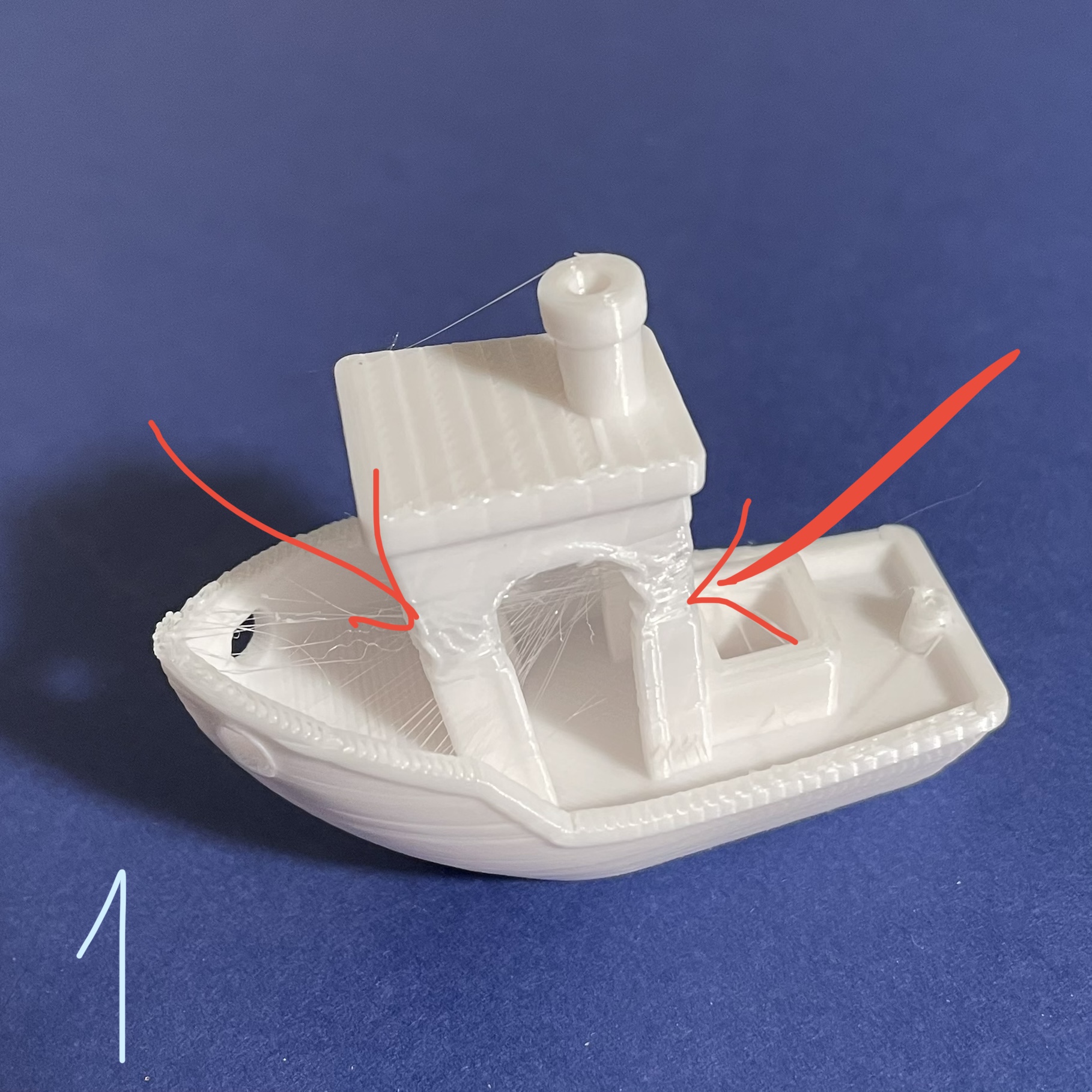 Benchy now works so far as seen in the pics. Only thing is the deck house pillars are unstable at these marked two points: