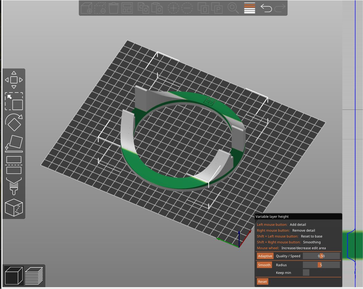 Using PrusaSlicer this area is used as a modifier where I can change the layer height to .06mm in the green area.