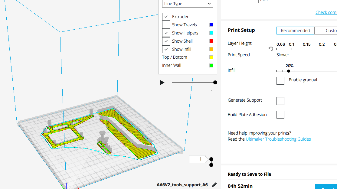 When i have a part with "supports" it skips the skirt, and makes a weird shape not extremely relevant to what I am going to print for the first layer. Then, it seems to "speed up" as it considers this the first layer (i think....) and makes my actual first layer look rough, as in the printer head isn't level and needs to be closer to the bed, although i leveled it.