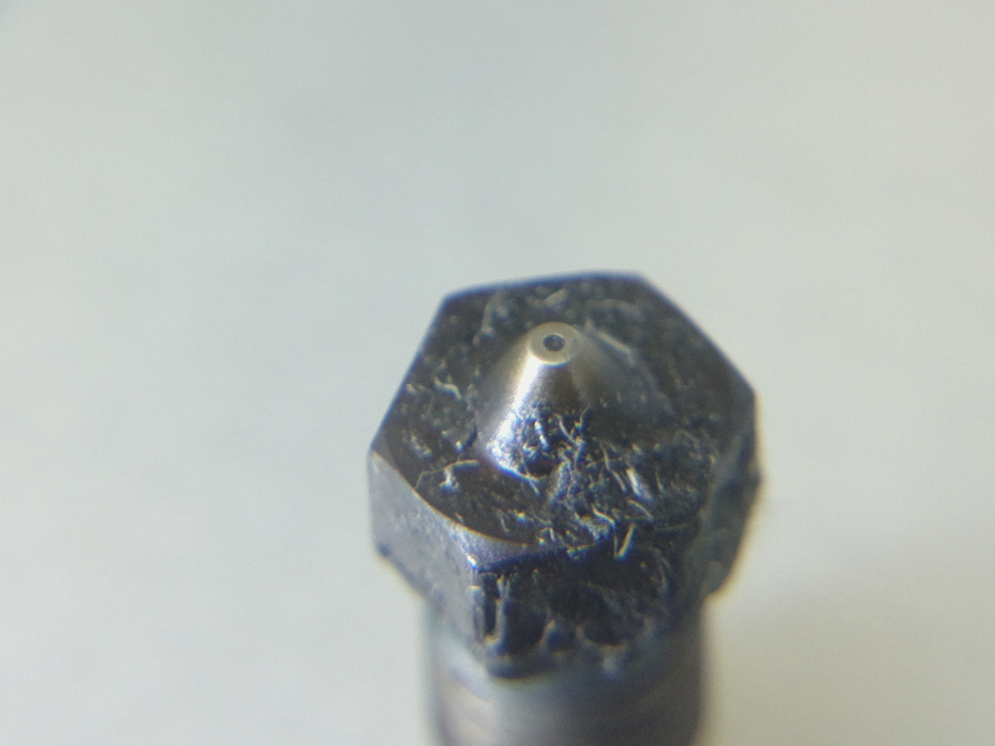 After 24 hours and just 70 grams of XT-CF20 it is already obvious that the tip of the nozzle is getting rounder (!).
