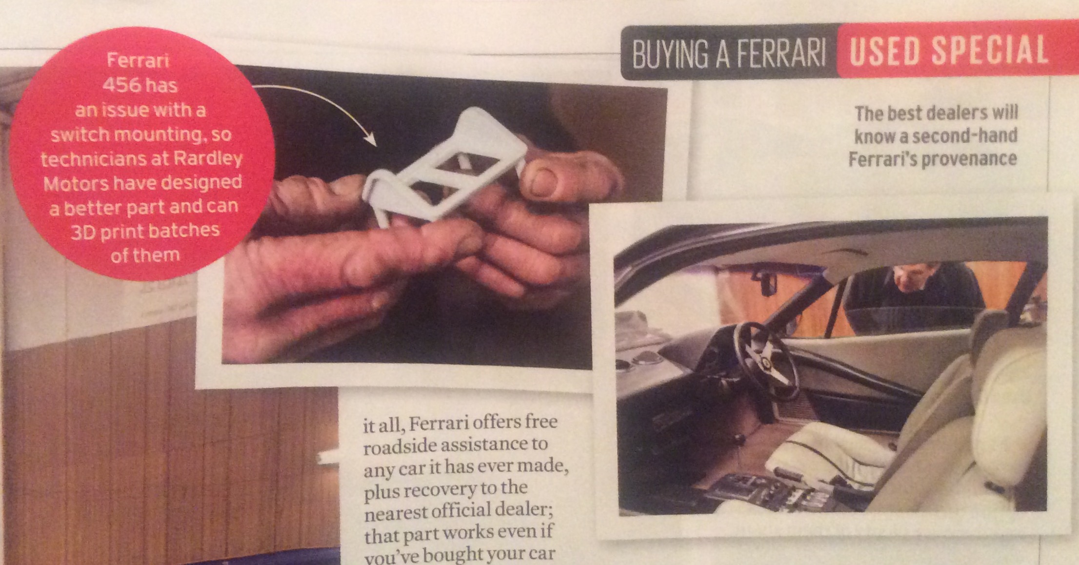 The piece I modelled and printed for the Ferrari 456 has been mentioned in autocar magazine, although typically they don't get their facts right.