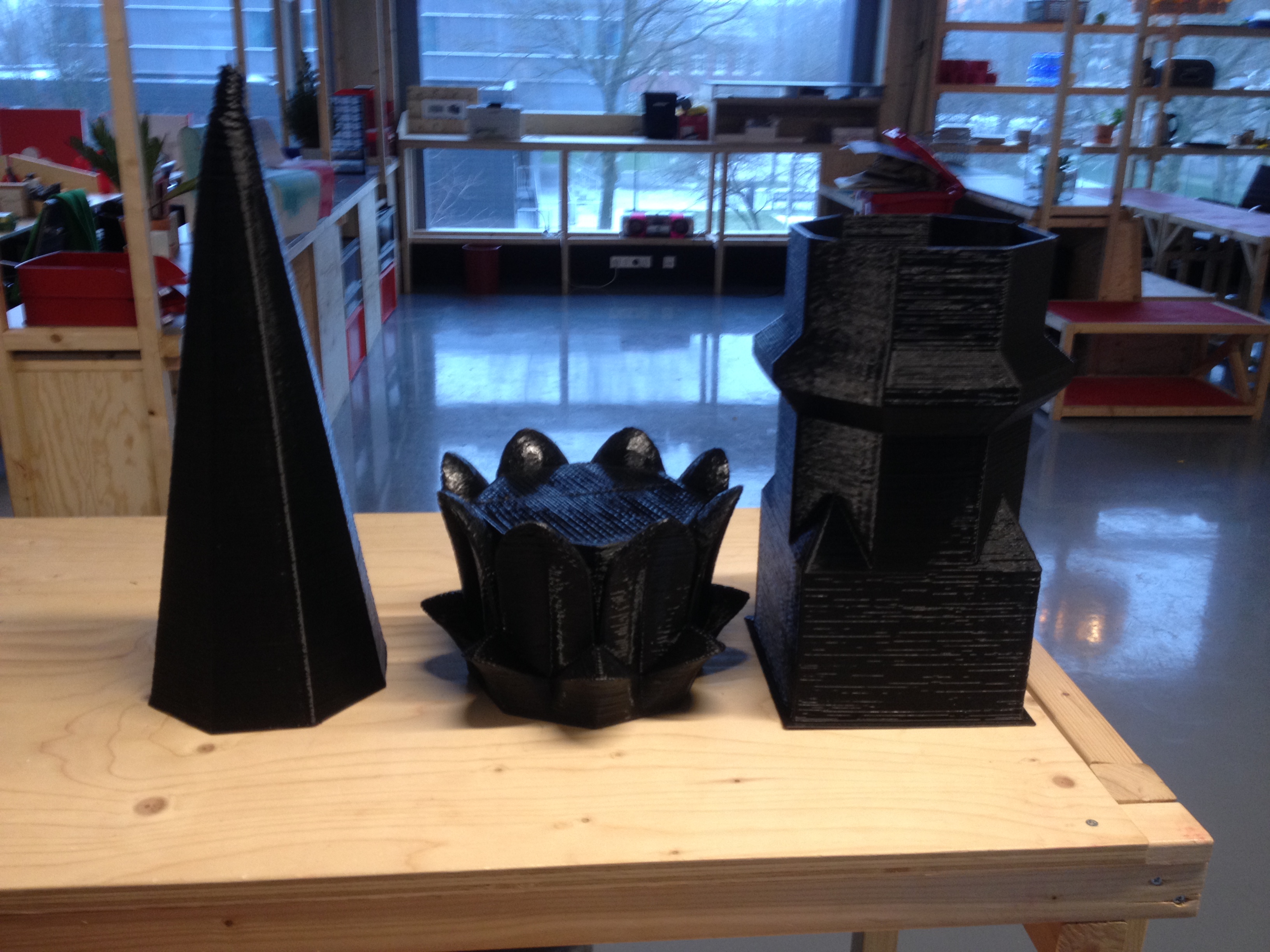 Playing with a 3mtr high WASP delta printer, nozzle dia. 3mm with up cycled PLA pellets. Printsize is 100cm. diameter and 110cm high as max.