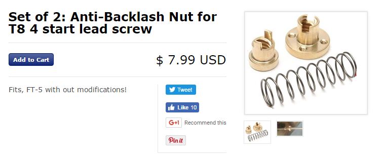 I think the reason anti-backlast nuts aren't included in the FT-5 kit (other than minimizing costs) is that there isn't much if any need for them -- the rods they'd be on are vertical, gravity acts as the anti-backlash there.