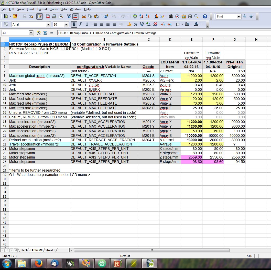 Slic3r, 'Cura' and EEPROM settings speadsheets
