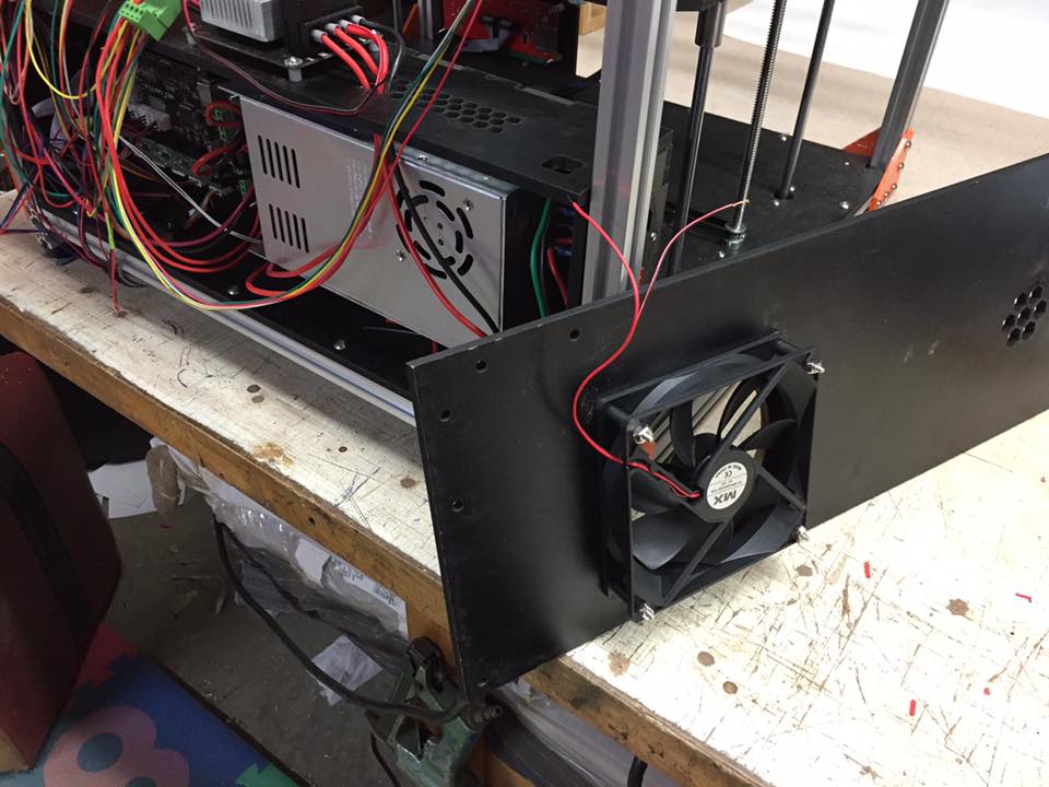 * One of the builders posted some before and after print pictures of without direct stepper driver cooling and with. It's an impressive image and showed great gains in details if the drivers have a steady cooling airflow on them. Following his lead, I have purchased a 120 mm case fan. I'll cut a large hole in the electronics rear door for it. That'll be a lot of airflow in there!