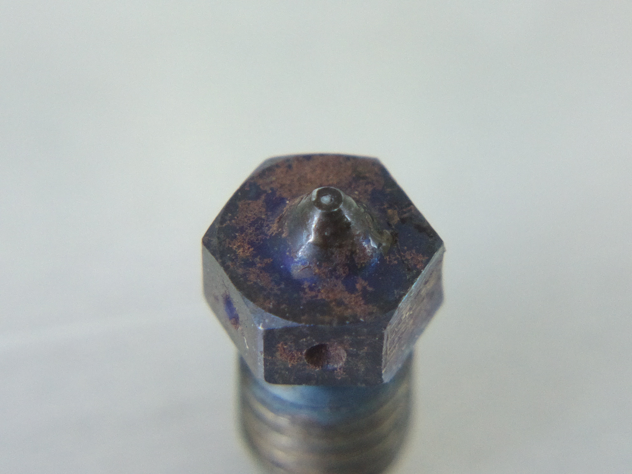 After 24 hours and just 70 grams of XT-CF20 it is already obvious that the tip of the nozzle is getting rounder (!).
