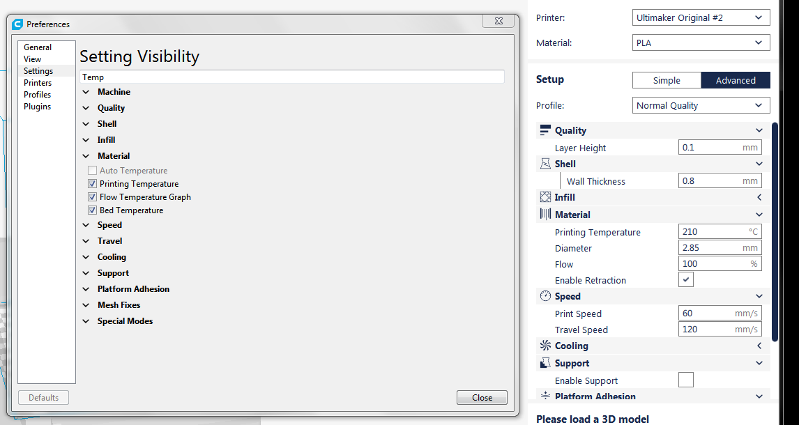 I get the following when creating a new UMO (with either HB or HB self supplied & feeder upgrade). I do not see the Heated bed temperature in the settings: If I take an UM+ as the machine, it works no problem: Is it me?