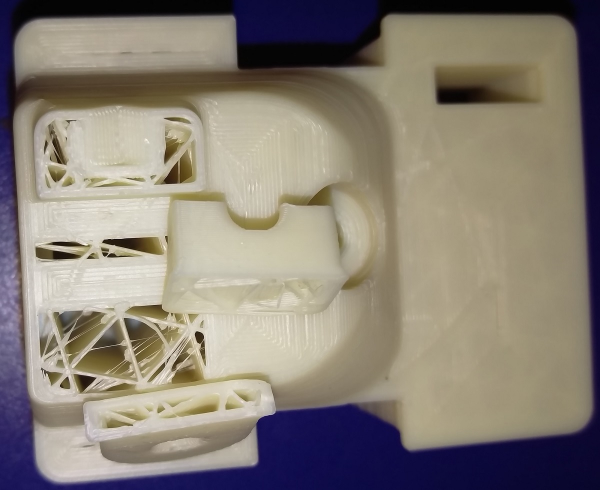 1)Part rigidity.Its top section is breaking easily as the wall section is thin.I want to make just the top section solid so that its more rigid (rigidity needed only on the top section where the grooves are).I am attaching the stl file and the pic of my printed part.You can see the top section broke with very little force.