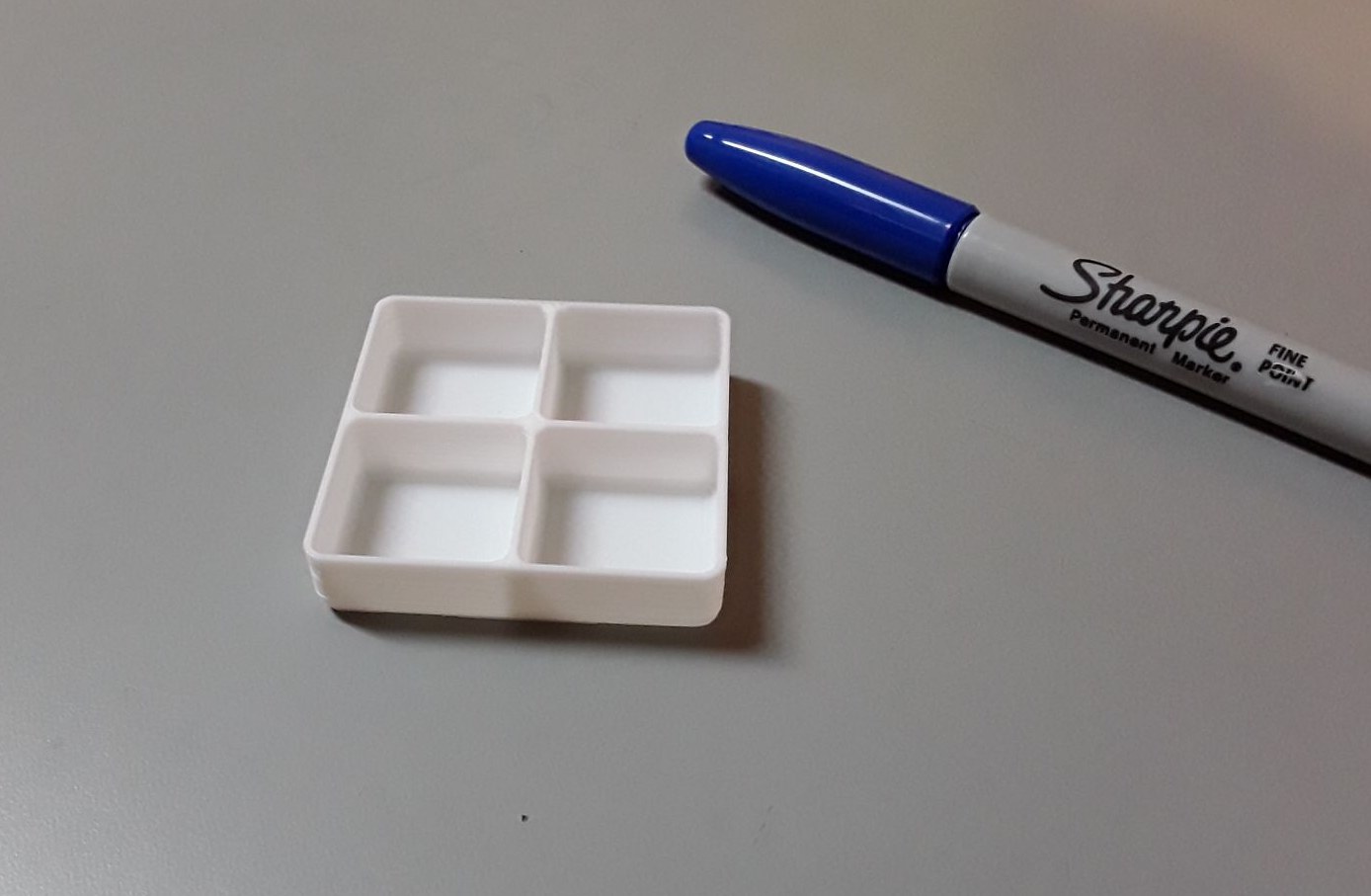 All my griping aside, the printer seems to work great. My first print (a small square cup with divider walls) started to go bad right away, but it wasn't the fault of the printer- I didn't put the tape down firmly enough and it started to delaminate. I aborted the print, reapplied the tape more firmly, and printed again. It's about 1/2 done and it looks perfect. Super crisp, no stringing, nothing wrong at all that I can see.