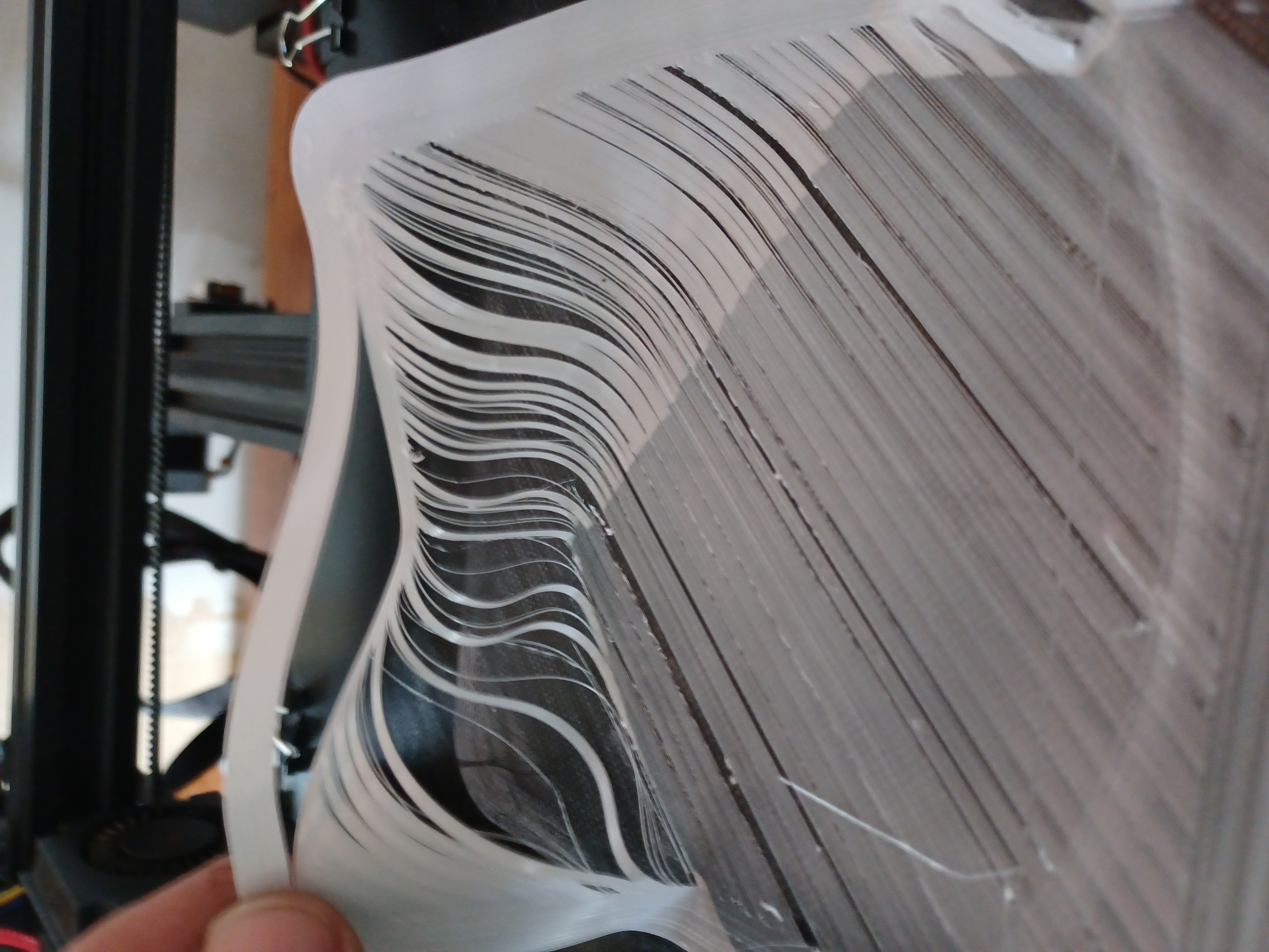 Long story short. Ender 3 pro. Always had an issue getting print to stick to the glass bed, but a glue stick fixed that. Made idk 3 or 4 prints all the same prints. Last print I did it finished and the print was super weak like it was crushing popcorn in my hand. So thought the pla was getting bad. So I bought hatchbox pla installed it leveled out the bed and began printing worked good but looked weird. It wasnt true white. But after a few mins the nozzle was dragging the print. Ive leveled the bed like 3 times thinking I was to close or something.