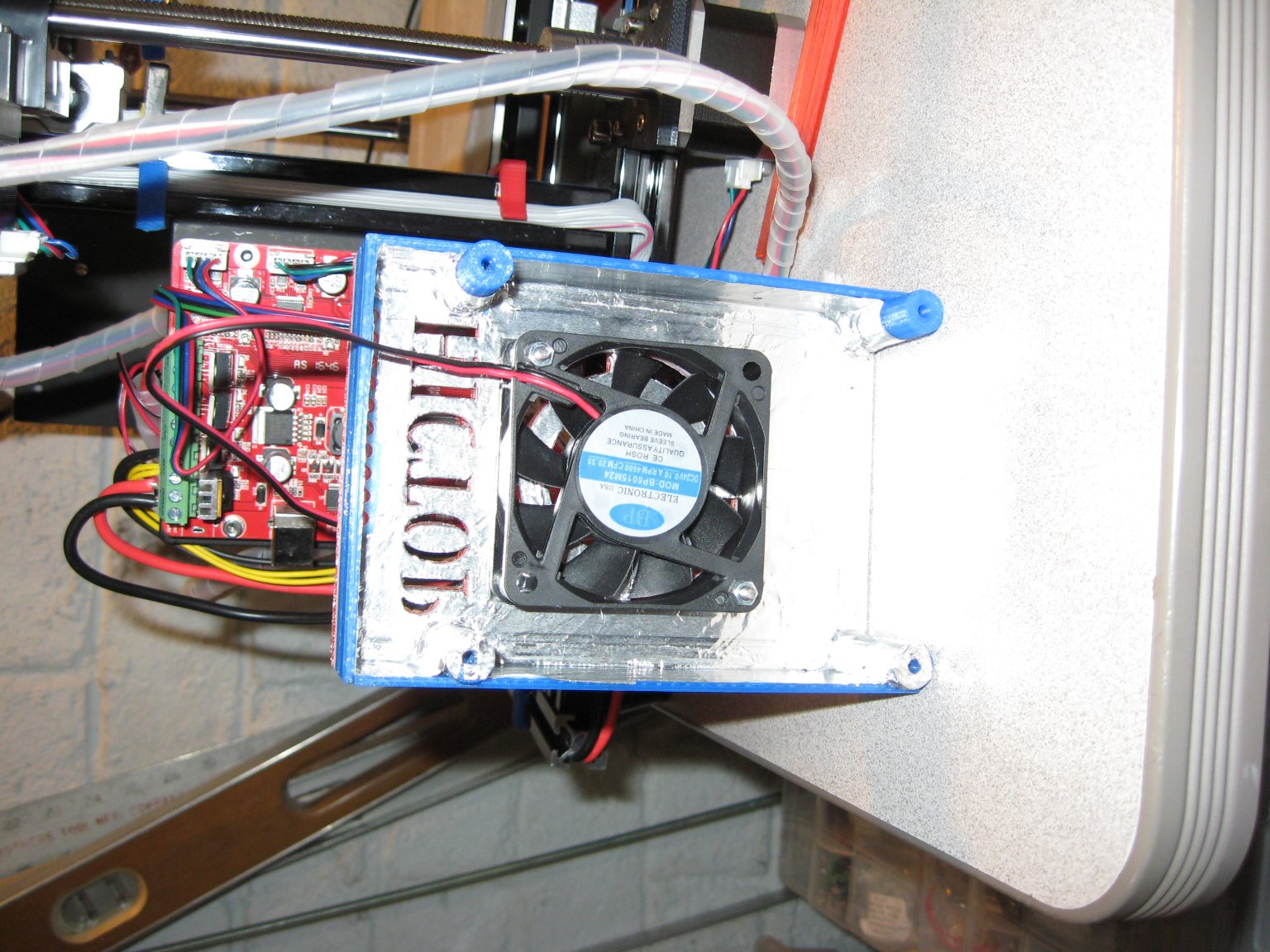 This is a familiar RepRap 1.3/1.4 style controller from Hictop. for which I have modified with a single heat-sink and cooling fan.